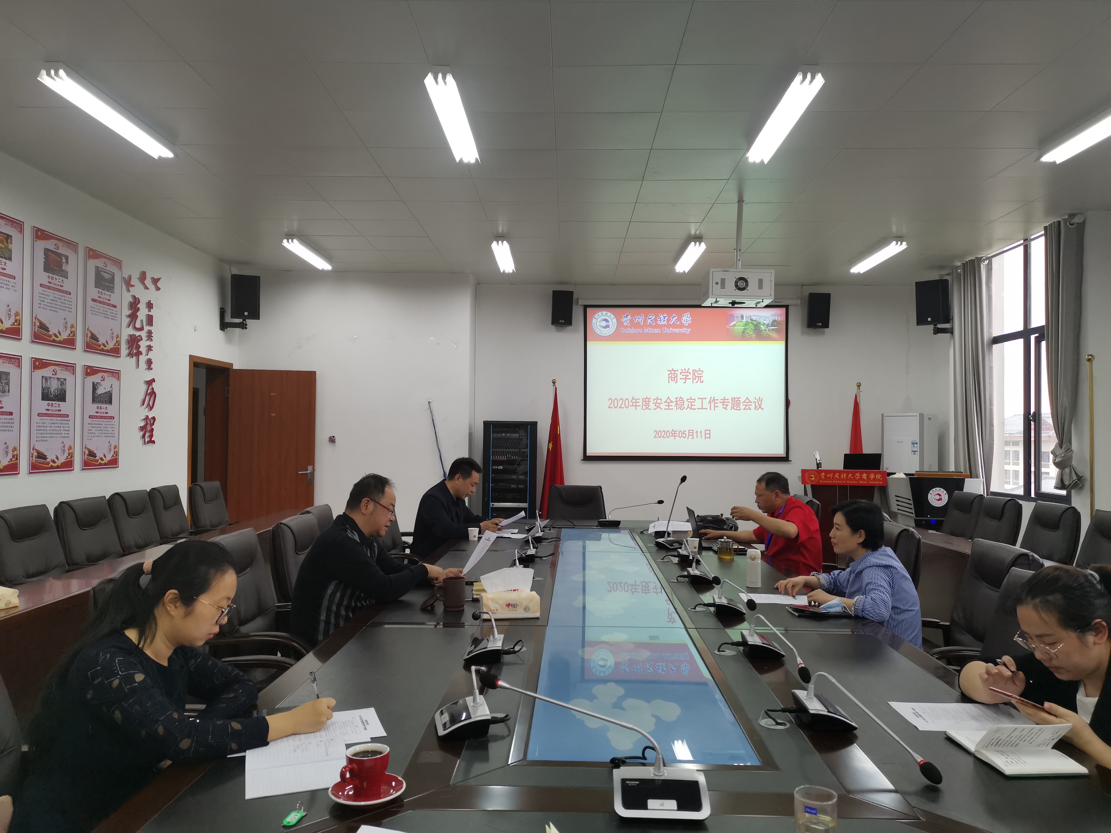 2020年5月11日,商学院在学院会议室召开2020年度安全稳定工作专题会议,会议由学院党委书记晏超同志主持。学院班子成员、行政人员、政治辅导员与班主任参加了会议。