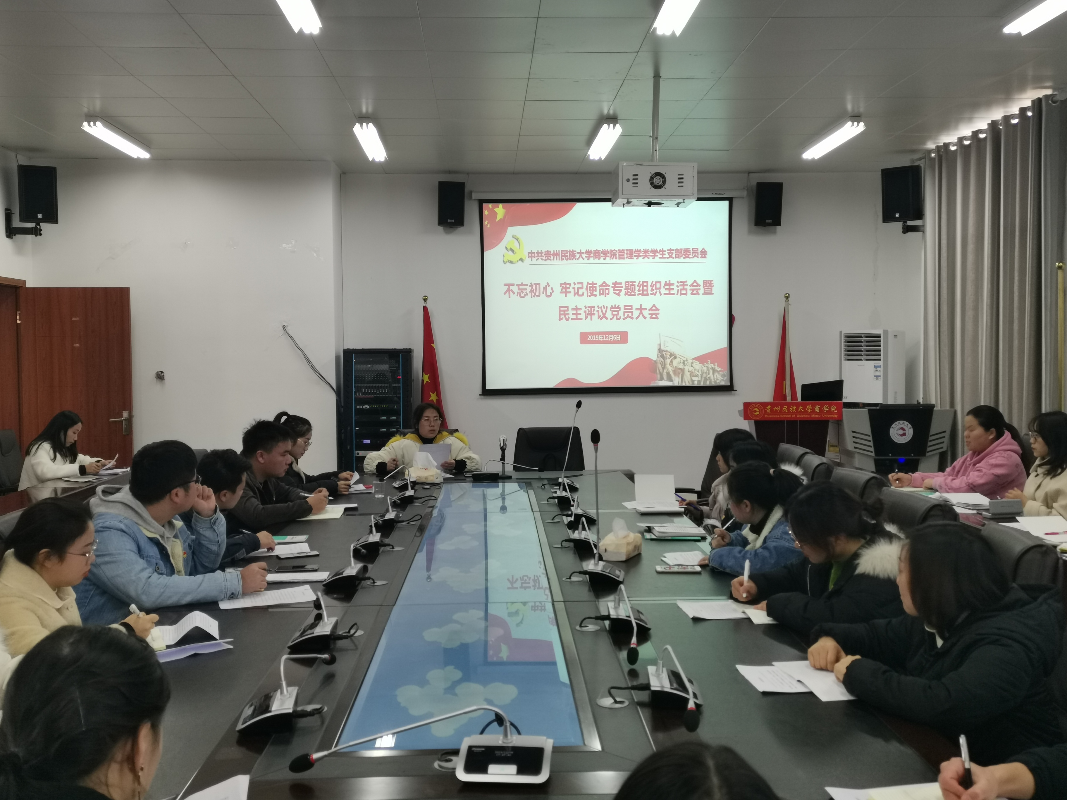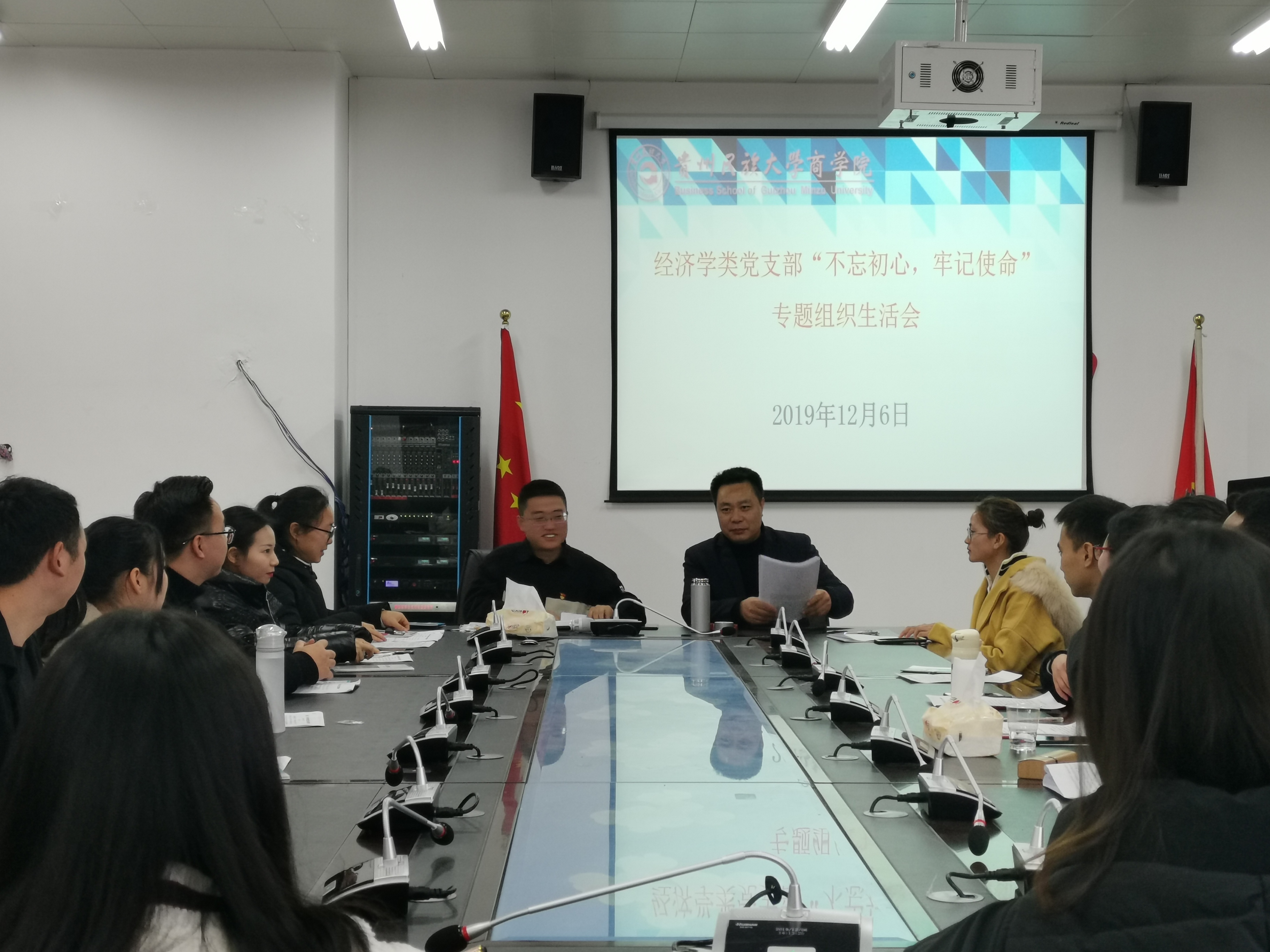 2019年12月6日,商学院教工党支部、经济学类学生党支部、管理学类学生党支部先后在商学院会议室、党建活动室与学生活动室召开“不忘初心,牢记使命”主题教育专题组织生活会与民主评议党员会。学院党员处级干部都以普通党员身份参加了教工党支部的专题组织生活会与民主评议党员会。党委书记晏超同志先后到两个学生党支部进行指导。各项会议议程按照规定圆满完成。