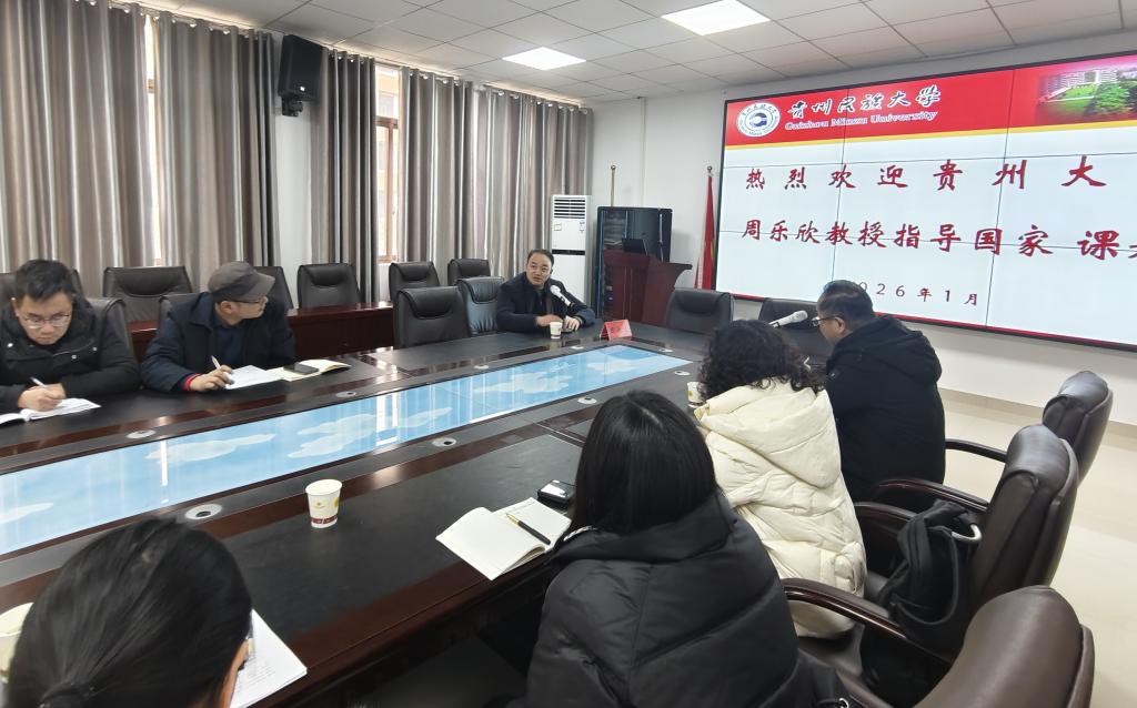 2026年1月9日,贵州大学人文社科处处长周乐欣教授受邀莅临我院指导国家社科课题申报,会议由院长王红梅教授主持,学院30余名教师参会。周处长不仅主持过国家社科基金项目2项、国家自然科学基金项目1项,且有丰富的科研管理经验,此次专题指导交流,对我院提升2026年国家社科课题申报质量有重要意义。