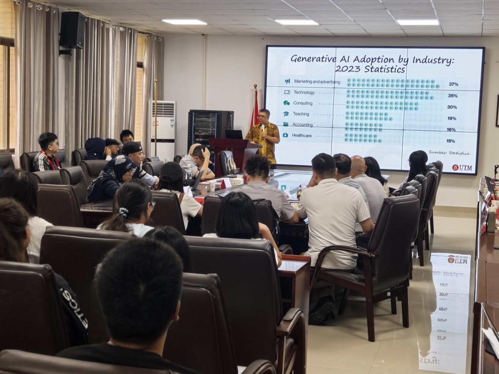 再后,马来西亚理工大学计算机学院Mohd Shahizan Mohamad副教授作了题为《未来已来:生成式人工智能如何重塑科研论文发表》的学术报告。报告深入剖析了生成式AI在科研写作、论文发表等领域的应用前景与挑战,讲解生动,引发在场师生浓厚兴趣与积极互动。报告结束后,双方围绕“人工智能遗产、微气候分析、数字人文”等主题展开热烈交流与讨论。