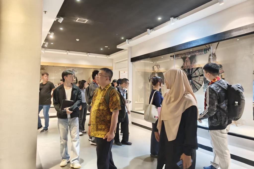 现场交流讨论结束后,马来西亚理工大学全球访学拓展计划研学团在学院相关负责人陪同下,参观了学校欧东花非遗博物馆,深入了解我校在民族文化传承与保护方面的成果。最后,全体与会人员合影留念。