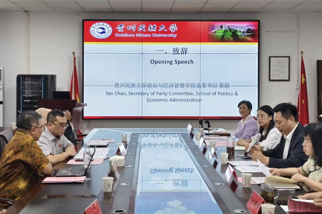 2025年9月22日下午,在贵州民族大学政治与经济管理学院216会议室,我院与马来西亚理工大学全球访学拓展计划研学团开展文化学术交流活动。学校国际交流与合作处处长李建玲、学院党委书记晏超、院长王红梅等15位教师及43名研究生、本科生代表出席文化学术交流活动,活动由学院副院长田丽敏主持。